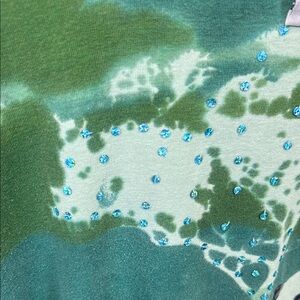 Vibrant green & Blue t-shirt with sparkling sequins and Blue Stones