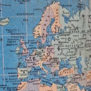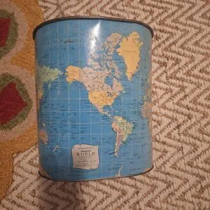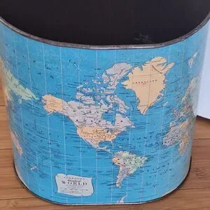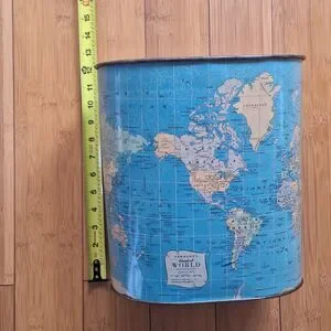 Vintage Hammond's World Map Waste Basket Garbage Can Tin Litho Trash Can 50s 60s
