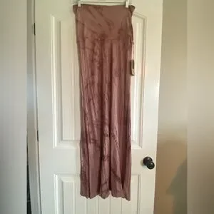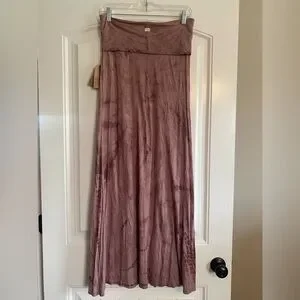 Stylish mauve maxi skirt with tie-dye pattern. Flowy and chic design. Fits more like a medium.