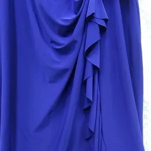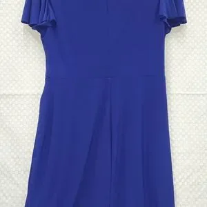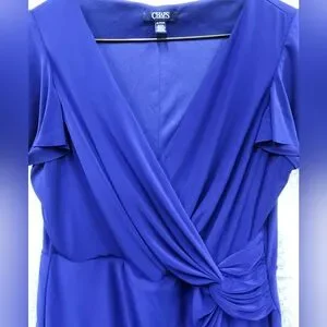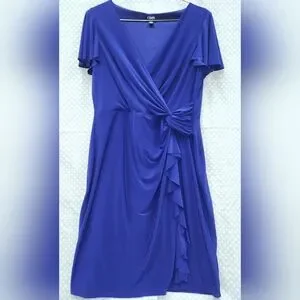 Chaps XL dress in deep royal cobalt blue. V-neck with side drape ruffle down the skirt. Short flutter style sleeves. Very comfy stretch material.