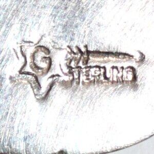 Stamped sterling and with an artist hallmark which is a G inside a star with an arrow.
