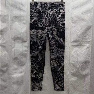 Athleta Aurora Shine Black and Silver Marble Swirl Athletic Tights Leggings