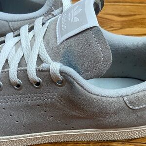 Comfortable Stan Smith Adidas sneakers in light gray. Ideal for everyday style. Some faint blue colour staining from jeans, see pictures