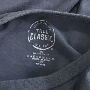 Experience comfort and style with this True Classic navy men's t-shirt. Size L.