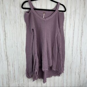 Free people cold shoulder waffle knit sweater in a dusty lavender purple color. Size xs. Gently preloved in great condition. Frayed edges.