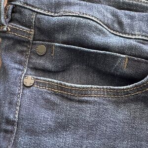 These jeans are an excellent used condition and have no flaws. The waist is 34 inches and stretches to 20 inches. The rise is 11 inches. The inseam is 23 inches with the cuff rolled.