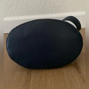 This stylish navy blue bucket bag features a sleek design with a gold buckle accent. Perfect for any occasion, it combines fashion and functionality.