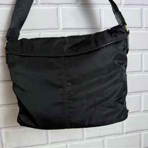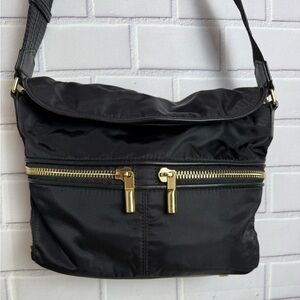 Elizabeth & James Black Nylon Crossbody Bag - Gold Hardware 10x11x8in