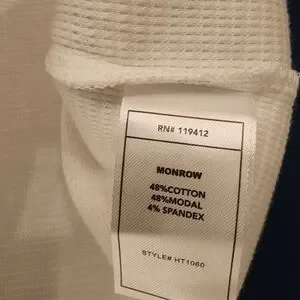 48% Cotton, 48% Modal, 4% Spandex Color- White