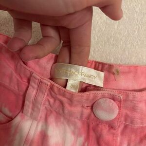 LoveShackFancy Pink and White Ruffle Mini Skirt