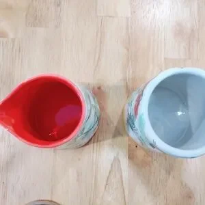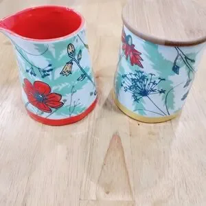Enhance your coffee experience with this charming floral ceramic creamer and sugar set. Featuring vibrant red and yellow accents, this set adds a touch of elegance to your kitchen. Perfect for serving guests or enjoying a quiet morning coffee. Used as display at Tate+Zoey vendor events only. All items come from a non smoking, cat friendly home.