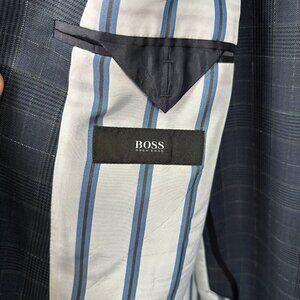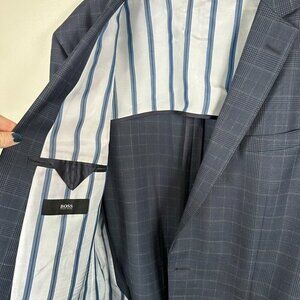 Hugo Boss The James Wool Blazer Jacket Size 44L Blue Plaid Career Business
