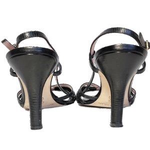 Elegant black strappy sandals. Sleek design with a chic heel. Perfect for any occasion.