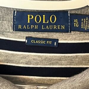 Ralph Lauren Men's Polo Shirt - navy blue and White Stripes