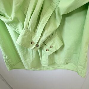 Magellan Sportswear long sleeve fishing / outdoor shirt in a bright lime green that screams spring hikes, river days, and PNW adventures ☀️🌲