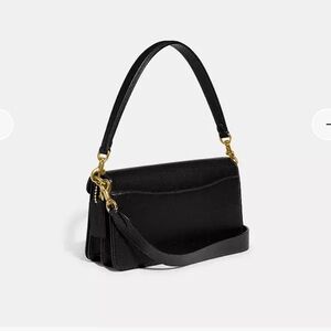 Stylish Coach shoulder bag in black. Features a bold gold clasp. Perfect for any outfit.