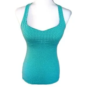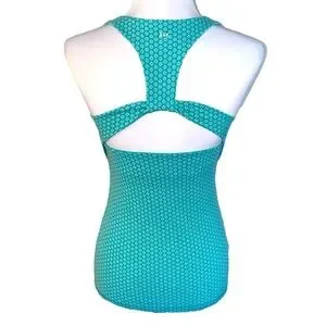 Lucy active top, built-in bra tank, turquoise workout top, floral athletic top, yoga tank, women’s size small, fitness top, racerback top