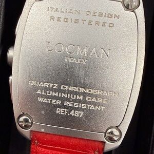 Stylish Locman Italy watch with a vibrant red leather strap. Features a bold red dial with silver accents.