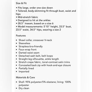 Elegant and timeless Adrianna Papell tuxedo-style jumpsuit in classic black. This sophisticated one-piece features a flattering wrap-front silhouette with satin shawl lapel detailing and a waist-defining tie belt for a polished evening look. Perfect for cocktail events, formal dinners, weddings, or holiday parties.