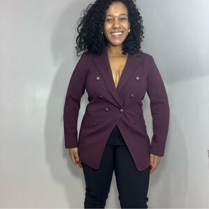 Doncaster burgundy plum purple wine cinched waist blazer double breasted jacket