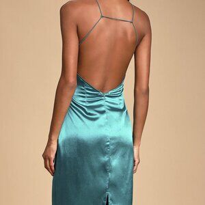 NWT Lulus Zoyah Teal Green Satin Backless Midi Dress