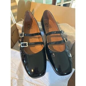 Miz Mooz Zaida Black Crinkled Patent Leather Mary Jane Flats 37 6.5-7