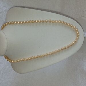 This elegant pearl necklace adds a touch of sophistication to any outfit. The cream-colored pearls offer a timeless look, perfect for any occasion.