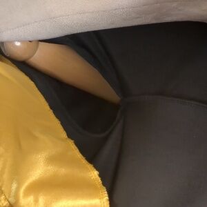 Vintage Serengeti 70s black velvet long maxi robe with gold satin trim and a full zip front with matching gold satin on the bell sleeves. This elegant velvet robe has sparkly metallic trim, side pockets, and a comfortable rounded neck line. Gorgeous hostess and lounge robe.