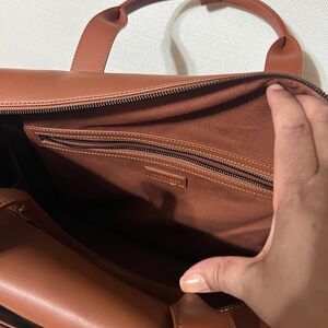 Monos Metro bag. Detachable pouch. Dust bag included. Crossbody strap. Trolley sleeve. Laptop pocket. Vegan leather. Cognac color. Minimum wear.