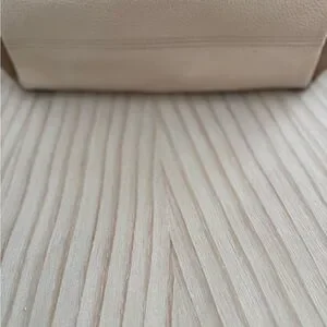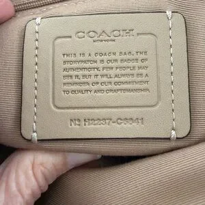 Chic Coach tote in cream and brown leather. Features gold-tone accents. Perfect for everyday elegance.