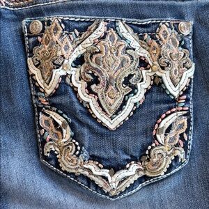 Grace In LA Embroidered Rhinestone Bootcut Contrast Stitching Jeans Size 30