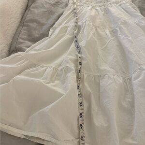 flirty white midi dress with a sleeveless design. includes adjustable straps . Perfect for versatile styling. Size small. No stains or flaws. Includes lining. Great for spring and summer.
