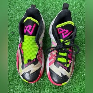 Brighten up playtime with these vibrant neon green and pink athletic shoes. Perfect for active kids, these shoes offer comfort and style.