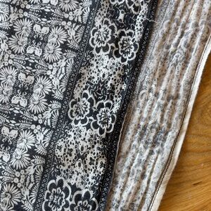 Elegant black and white patterned scarf. Perfect for any occasion. 100% cotton. Measures 38” x 38”