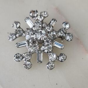 Vintage Elegant Silver Tone Sparkling Crystal Brooch