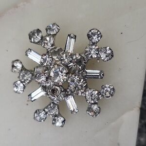 Add a touch of elegance with this stunning silver crystal brooch. Perfect for any occasion.