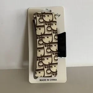 Stylish fashion rectangular hair claw clip featuring a repeating monogram print pattern. Classic design in brown and cream tones. Perfect accessory for any hairstyle. Brand new