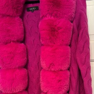 AKIRA Vibrant Pink Teddy Jacket with Fur Trim
