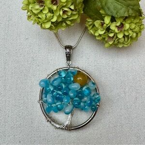 Tree of Life Turquoise Gemstone Beads Pendant Wire Wrapped Silver Chain Necklace