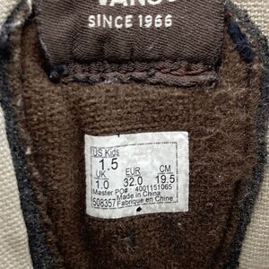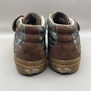 The Vans Sk8-Mid Sloth Strap Shoes in kids boys size 1.5 are stylish athletic sneakers with a floral pattern, featuring a hook & loop closure for easy wear. Made with brown suede upper material and a rubber outsole, these shoes offer comfort and support for boys on the go. The adjustable strap adds convenience and a personalized fit, while the fabric lining ensures a soft feel against the skin. Perfect for everyday wear or casual outings, these Vans shoes combine fashion and functionality for young boys.