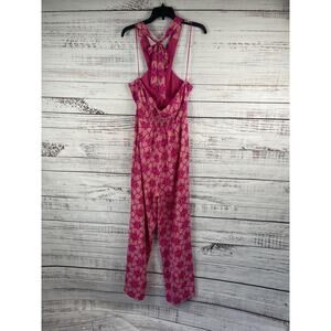 Impressions Jumpsuit Women's Small Pink Geometric Halter Backless Wide Leg