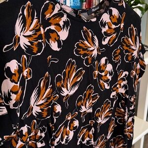 Stylish Madewell floral blouse with bold black and pink pattern. Perfect for casual or dressy occasions. Great for work. Excellent used condition. Only worn a few times.