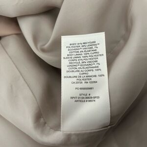 Content: 61% recycled polyester, 26% LENZING™ ECOVERO™ Viscose, 7% cotton, 6% elastane; Body Lining: 100% cupro; Sleeve Lining: 100% polyester