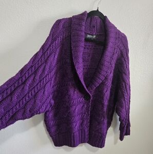 Jones New York Collection Purple Cable Knit Cardigan Sweater Size 1X