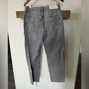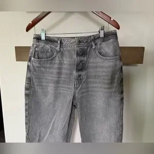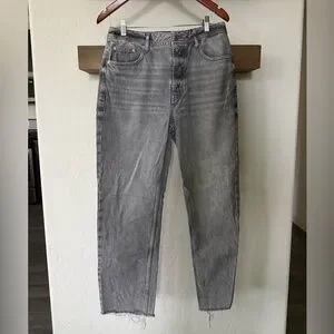 River Island|Gray high waisted,straight leg Jeans with raw hem•••size 12,staple