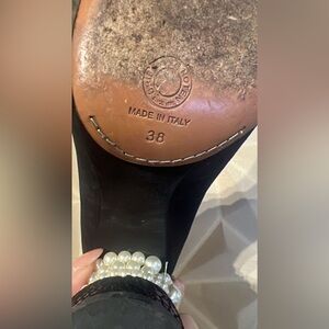 Dries Van Noten Black Velvet Heels with Pearl Detail