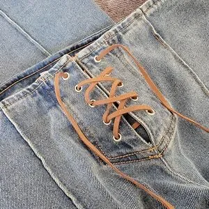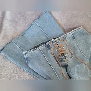 Super trendy lace up flare jeans that look straight out of the 70's or early 2000's Y2K era!