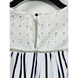 Doe & Rae High Low Sleeveless Top Crochet Lace Blue White Striped Size Small NWT