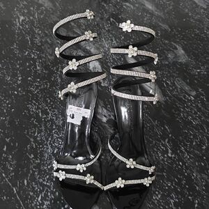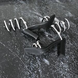BRAND NEW WILD DIVA ELEGANT RHINESTONE STRAPPY BLOCK-HEEL SANDAL SIZE 9 COLOR BLACK&SILVER Step out in style with these elegant black rhinestone strappy heels. Perfect for any occasion, these shoes add a touch of glamour to your outfit. all manmade material lining upper balance man made materials heel height measurements approximately 4"inched THIS ITEMS IS BRAND NEW WITH TAG NO BOX CHECK THE PICTURES (FYI THE FIRST PICTURES IS JUST A MODEL TO SHOW WHAT THE SHOE LOOK ON CHECK THE PICTURES)