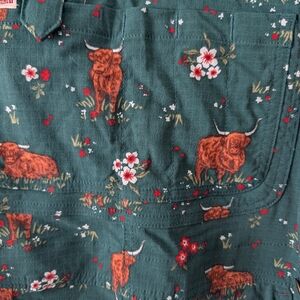 out of stock highland cow overalls. new never worn. size medium. 33 in long.